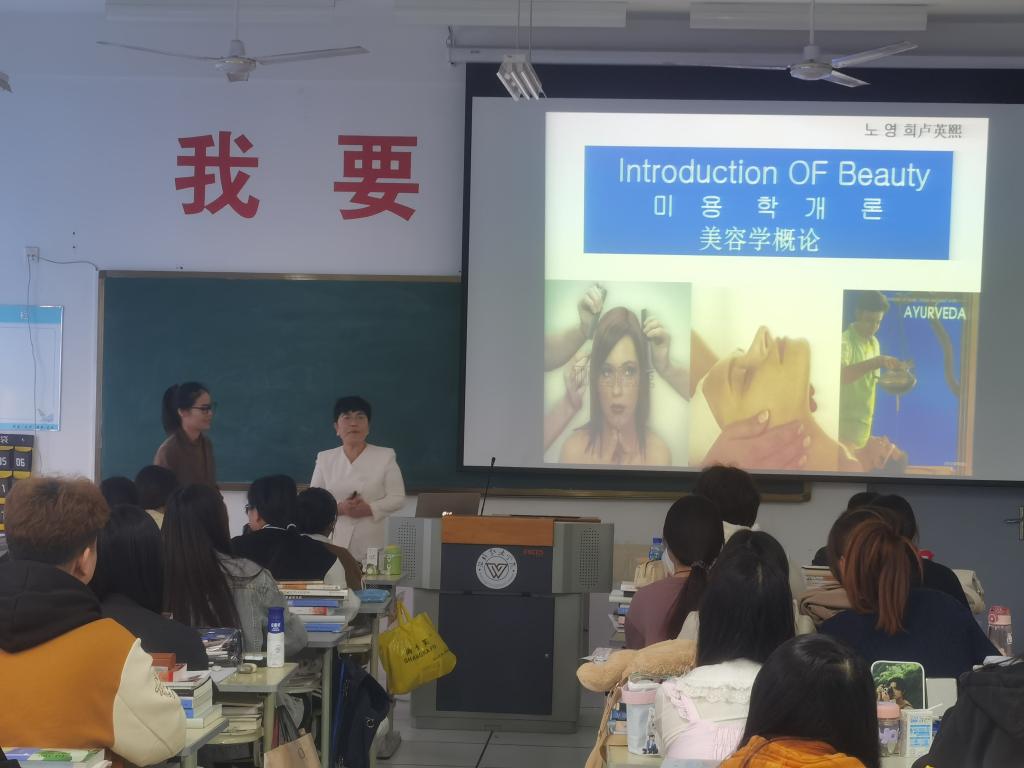 我院中韩合作办学项目于2021年招收第一批学生,受疫情影响,外教未能来校授课,韩方课程一直采用线上教学方式进行。卢永姬教授是项目首位线下授课外教,她为同学们介绍了韩国的文化风俗和化妆品行业发展现状,并自备礼物拉近了与同学们的距离,拓展了同学们的国际视野。线下教学将有效提高韩方的授课效果,为提升人才培养质量、加强双方合作交流、促进学院国际化办学发展奠定坚实基础。(王萌供稿)