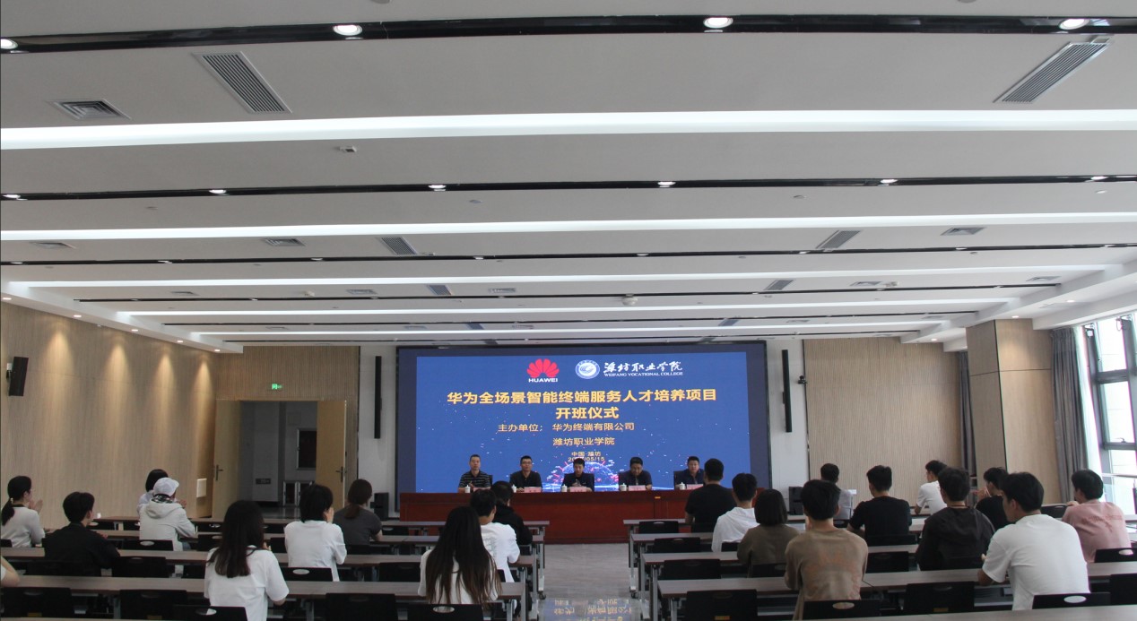 为培养输出更多高素质技术技能人才,拓宽毕业生就业渠道,助力我院学生高质量就业,5月15日下午,信息工程学院与华为终端有限公司联合举行全场景智能终端服务人才培养项目开班仪式。仪式由信息工程学院教学负责人主持,信息工程学院主要负责人、华为终端有限公司山东服务部运营经理张维麟、华为终端有限公司山东服务体系建设经理徐珂、潍坊景致通讯技术有限公司负责人朱学东参加了此次开班仪式。
