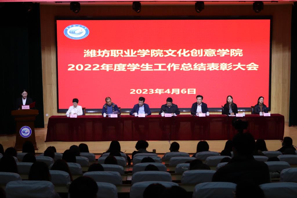 为总结学生工作,树立榜样标杆,凝练工作经验,助力一站式学生社区建设,4月6日,文化创意学院在奎文校区16号楼报告厅举办2022年度学生工作总结表彰大会,团委学生工作处、教务处、文化创意学院相关领导出席,全体班主任、辅导员、在校学生代表参加。