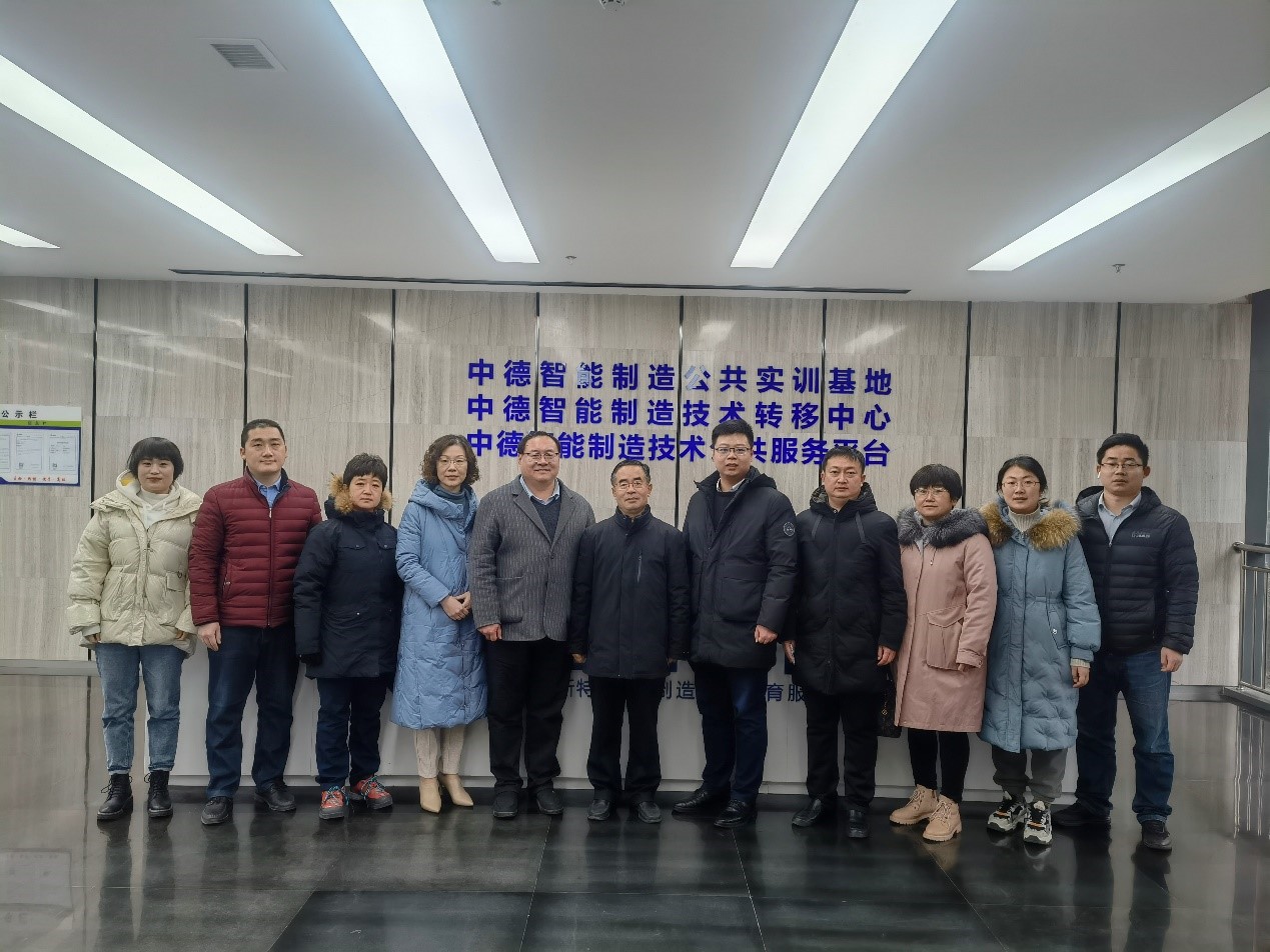 杨金龙带领老师们参观了莱茵科斯特潍坊中德智能制造公共服务平台,并详细讲解了平台项目在产、学、研、服、用方面的功能定位以及“产业链-创新链-教育链-人才链”运营模式。