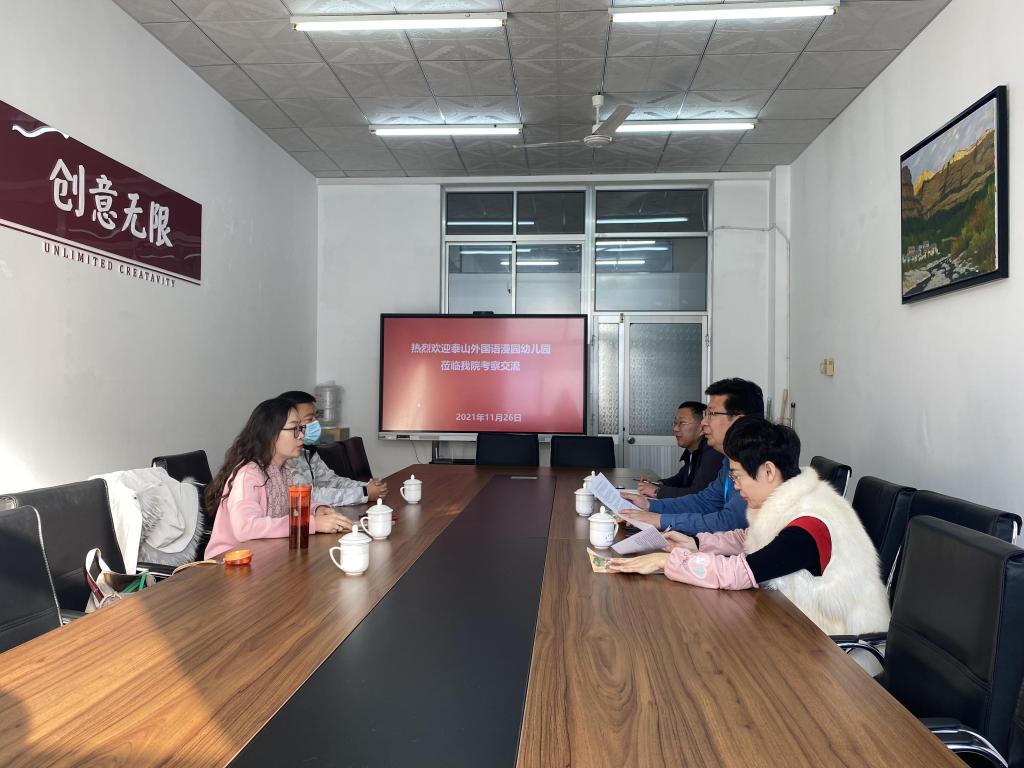 11月26日上午,泰山外国语漫园幼儿园园长刘瑶一行2人来文化创意学院考察交流。文化创意学院主要负责同志、分管产学研负责同志参加座谈交流。