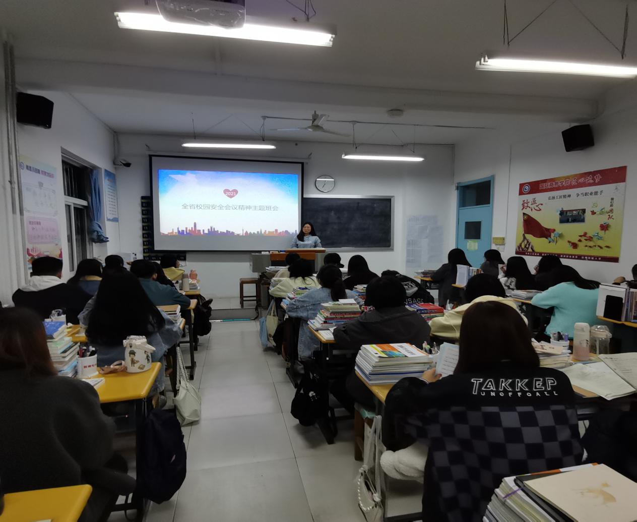 上好安全主题教育班会。各班辅导员(班主任)采用视频展示,直观性的图片分析等形式向学生传递安全教育信息。根据学院实际,对交通、食品、人身、心理及网络等方面的安全进行强调。安全教育课旨在增强学生们的安全意识,提高学生的安全防范能力,为学生的成长保驾护航。