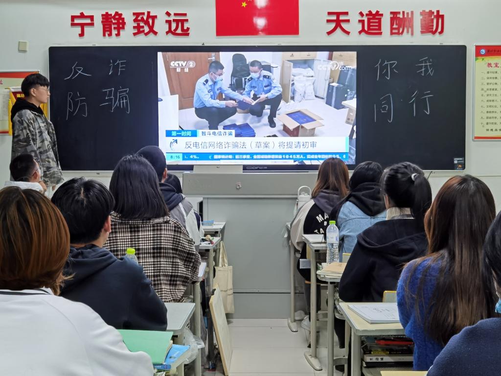 各班级通过召开主题班会,观看视频讲解,分析典型案例等方式,了解新型诈骗手段和形式,同时结合公安部开展的“断卡”行动,针对大学生群体已经成为帮助网络信息犯罪活动的高发群体这一现象,对使用信用卡、电话卡、微信及QQ等方面的防骗知识进行了详细讲解。在学生宿舍内,各舍长普及了和大学生生活紧密贴合的网络购物、刷单等相关防骗知识。各班级同学配合公安部门下载反诈防骗APP,确保每位同学都能受到切实保护。