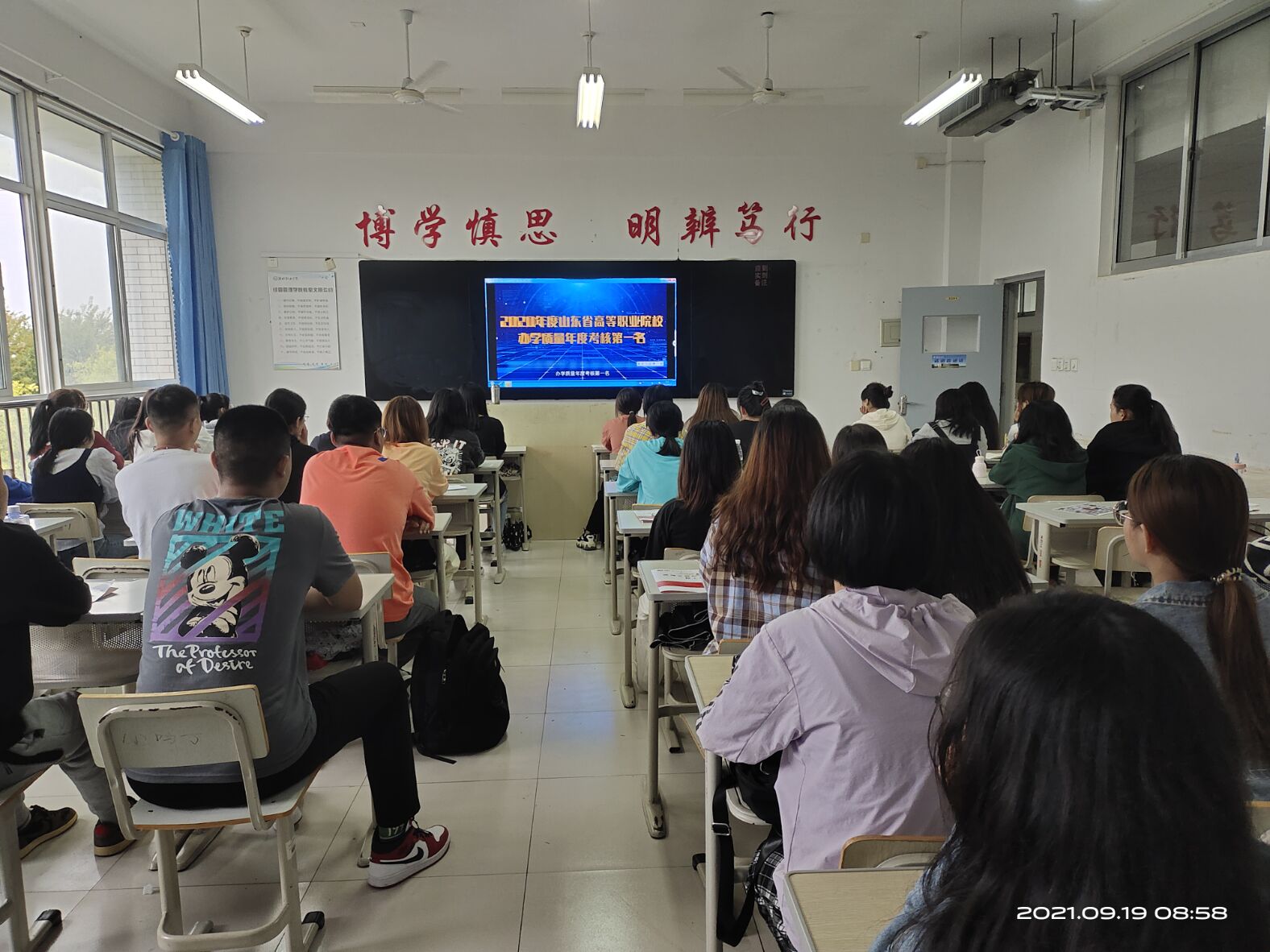 讲好校史校情教育,融入潍职“大家庭”。各班班主任组织新生观看了学院形象宣传片,讲解校训、校徽、学院概况,宣讲学院历史,并通过讲述潍职故事,让新生入学后即知校情、明校史,自觉树立爱校荣校的荣誉感和自豪感,把学院历史、发展成就和人文精神融入个人情感基因。