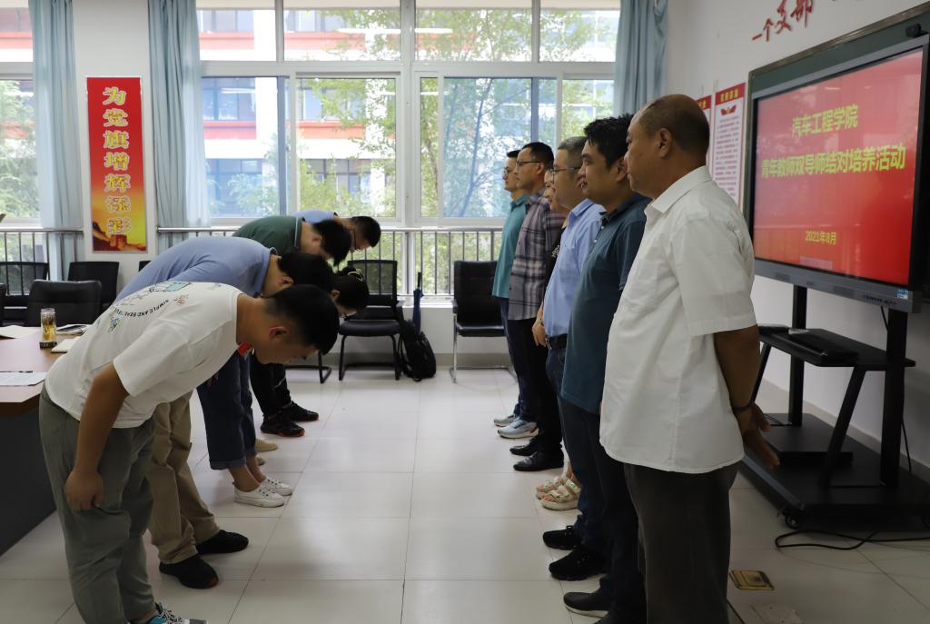与会领导传达了青年教师双导师结对培养的相关要求,宣布培养的具体模式和师徒职责,并举行拜师仪式。我院实行双导师培养制,为近三年进校的每位教师分别配备了一名专业技能导师和一名教学能力导师,两位导师通力合作,分别从专业实践技能提升、教学能力提升、科研及社会服务能力提升、学生管理能力提升、办公能力提升等多方面制定详细的培养目标和实施计划,建立指导台帐,学院定期召开结对培养研讨会,形成案例机制和督导机制,助力年轻教师实现快速成长。