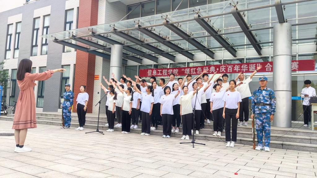 红歌唱响光辉党史,青春谱写华丽篇章。此次“颂红色经典•庆百年华诞”合唱比赛彰显了当代大学生的精神面貌,展现信息工程学院学生风采,丰富同学们的课余文化活动,增强了班级凝聚力,营造出积极向上、健康文明的校园文化氛围。(鹿慧敏供稿)