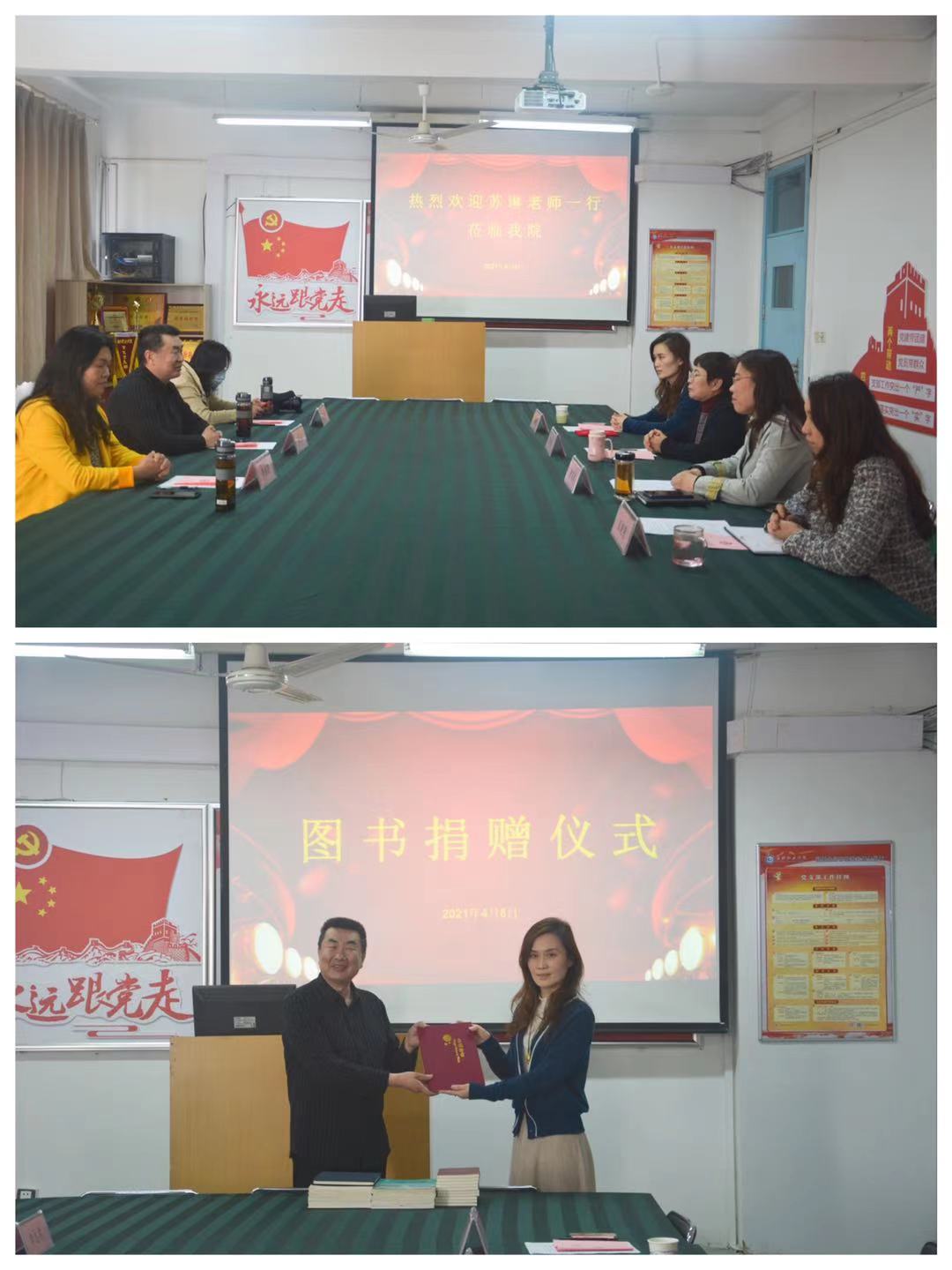 交流座谈阶段,国际商务学院主要负责同志对苏琳老师一行的到来表示欢迎,并简单介绍了我校办学及发展情况。苏琳老师将自己花费了二十年心血制作的作品集《东坡诗画》及诸城市苏轼研究会会刊《超然台》等刊物30余册捐赠给了学校图书馆,图书馆向苏老师颁发了捐赠证书。