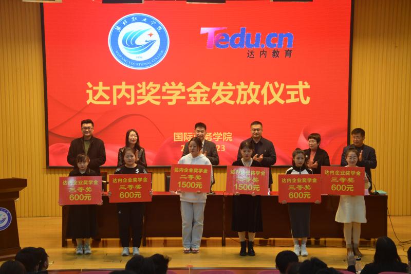 12月23日,国际商务学院在奎文校区创业中心报告厅举行2020年度达内企业奖学金颁发仪式。达内时代科技集团院校事业部北方区副总经理杨泽辉、人力资源管理教研总监吴慧青、山东大学生实训基地总经理徐勇、潍坊职业学院团委学生工作处负责同志、国际商务学院党政领导班子出席了颁奖仪式。