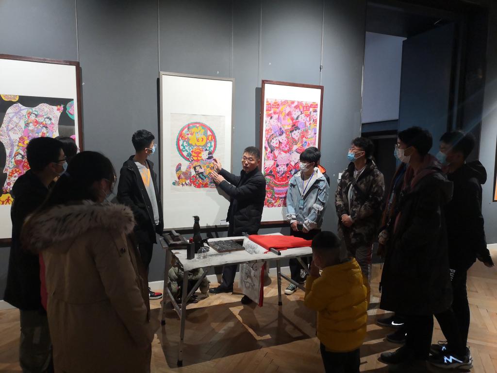 活动中,我院潍坊民间技艺传承基地年画工作室项目严海涛老师带领2019级与2020级15名环境艺术设计专业学生,到潍坊美术馆参观了“撷古契今——潍坊年画发展与创新成果展”,并到“十笏园”文化街区非遗传承基地进行研学,向学生介绍潍坊年画的历史与现状,深入了解和学习潍坊年画新中国成立后三次改革的创新成果,亲身感受在时代变革和大文化影响下潍坊年画的新面貌。
