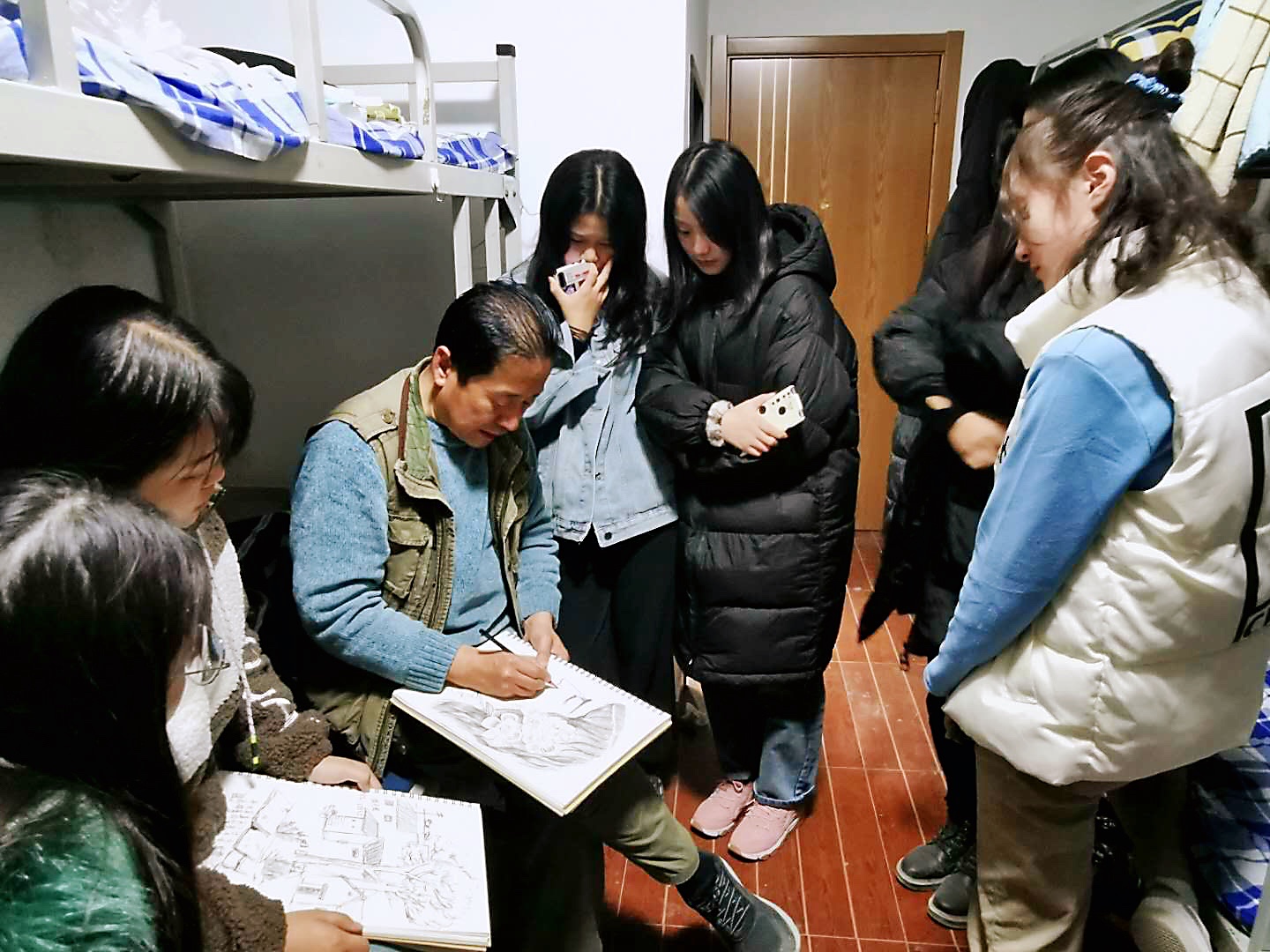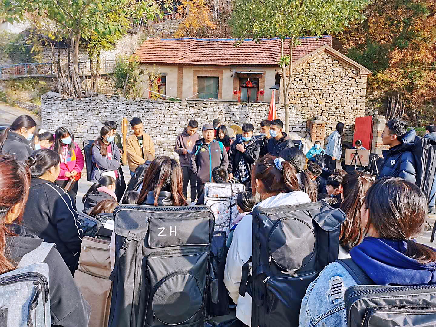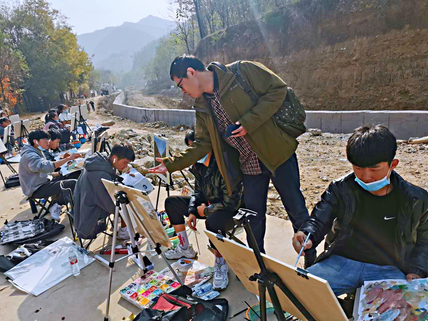 写生期间,学生穿梭于山间古道,以独特的视角进行取景,专注的挥动着手中的画笔,完成了一幅幅画作。写生过程中专业老指导学生完成粉画和速写作业。取景、创作、点评、交流,每一过程都是其乐融融。师生互动愉悦的教学实践,让学生在快乐中学习,在学习中进步。