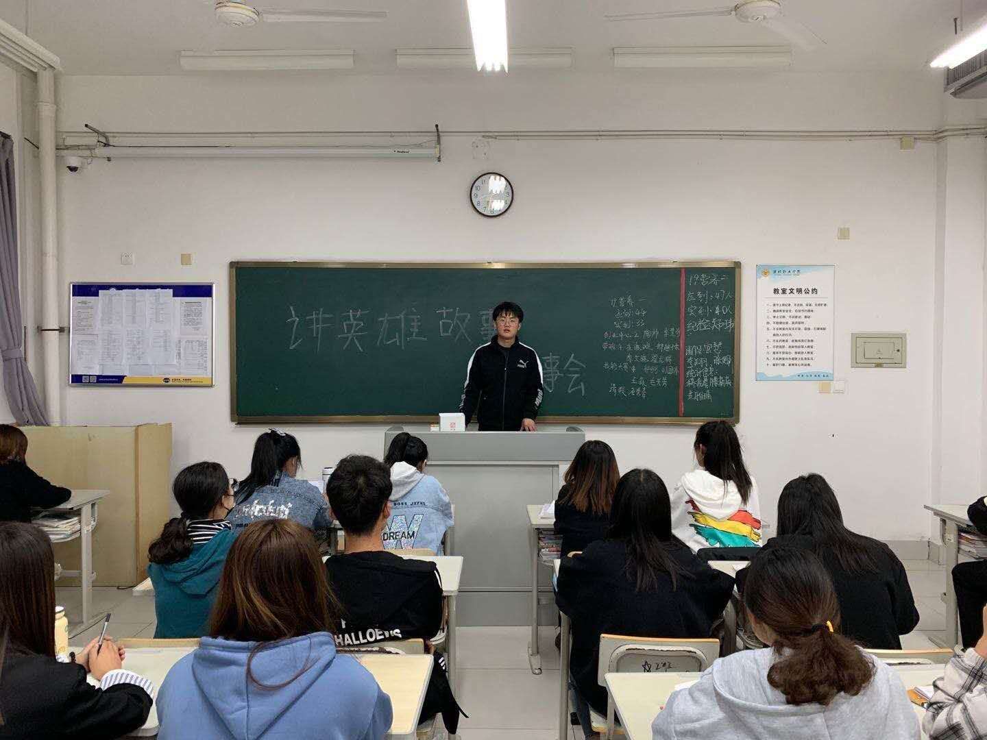 本次活动分为“致敬抗美援朝,争做时代新人”主题团日和英雄故事会两部分。主题团日活动中,各班团支书进行主题宣讲,同学们进行小组讨论,踊跃发言,并共同观看了抗美援朝纪录片;英雄故事会活动中,同学们为大家分享了自己家乡的抗美援朝老英雄故事,通过倾听英雄故事,学习抗美援朝精神,感慨现在幸福生活的来之不易。