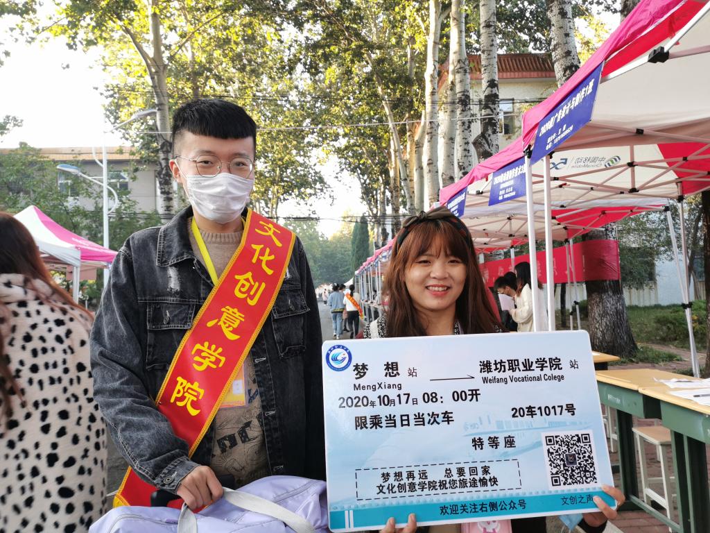 在疫情防控下,为确保2020级新生安全、顺利入校,让新生在没有家长陪同下感受到家的温暖,同时丰富校园文化生活,营造健康文明的校园氛围,文化创意学院百余志愿者齐上阵参与迎新活动,确保每个新生都有志愿者全程服务 。