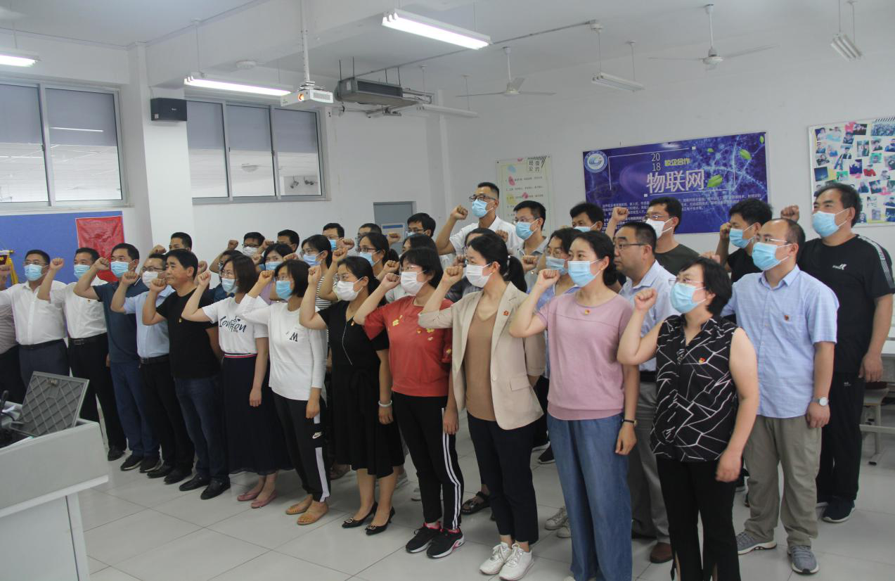 根据学院《关于组织开展庆“七一”系列活动的通知》要求,进一步强化基层党员干部的学习教育,增强教师党员队伍的凝聚力,6月18日下午信息工程学院党总支组织全体教师党员在惠泽2号楼B408教室开展了“重温誓词忆初心 立足岗位作贡献”活动。