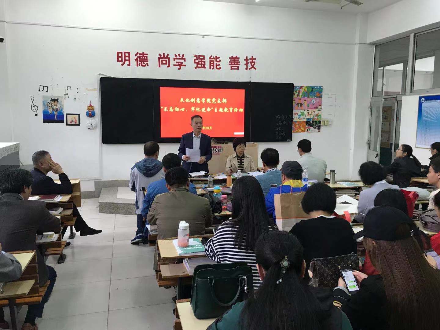 为进一步加强文化创意学院师德师风建设,深入推进“不忘初心、牢记使命”主题教育,充分发挥先进典型的示范引领作用,进一步教育引导全体教师学习先进人物事迹和高尚情操,争做“四有好教师”,10月10日下午,文化创意学院举办“我身边的榜样”优秀教师经验交流会。文化创意学院全体教师60余人参加报告会。