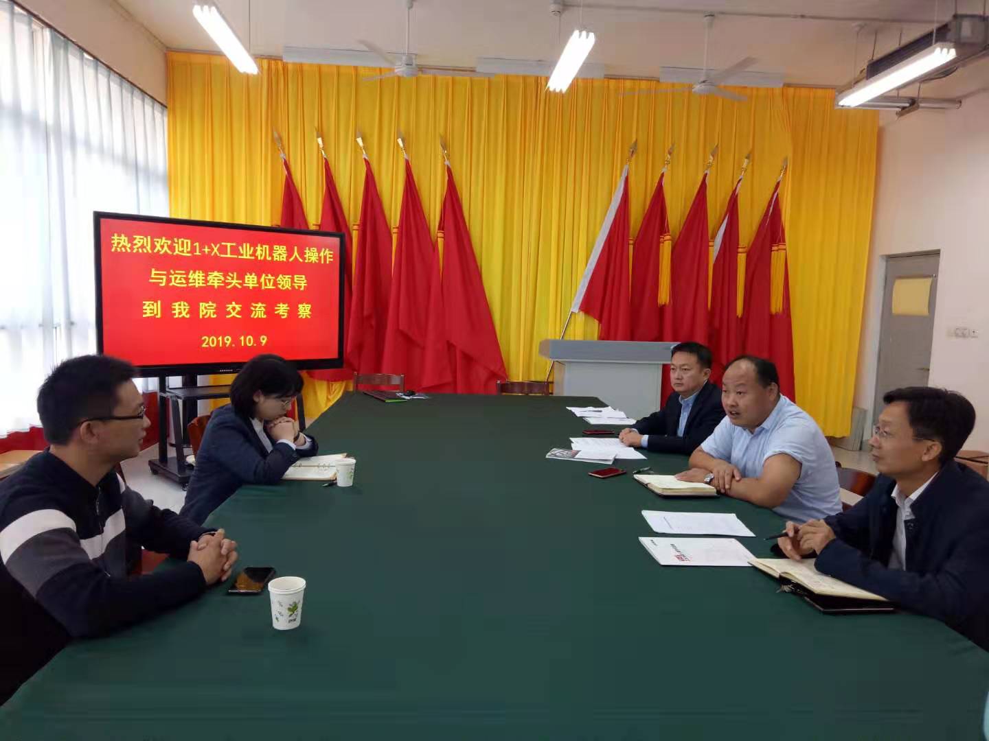 10月9日,山东栋梁科技设备有限公司作为“1+x”工业机器人操作与运维项目牵头企业来我院洽谈交流。机电工程学院相关负责同志参加了交流活动。