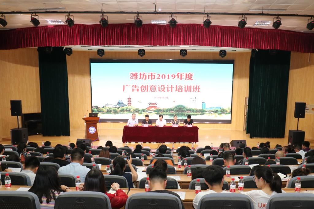 为了进一步提升驻潍高校艺术设计类专业师生整体创意设计水平,培养广告设计专门人才,7月3日下午,潍坊市广告协会与潍坊职业学院文化创意学院联合举办了潍坊市2019年度广告创意设计培训班。来自潍坊5所高校的210名师生和潍坊广告企业的代表齐聚潍坊职业学院参加培训,文化创意学院主要负责同志和数字媒体艺术设计专业、广告设计专业80名师生代表出席。