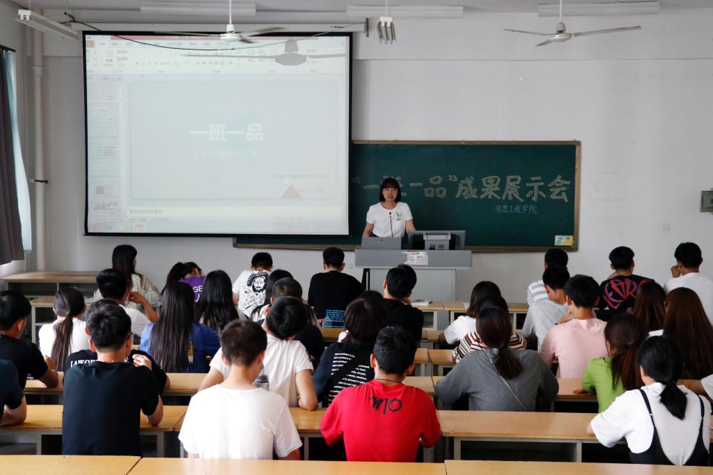 “一班一品”品牌班级建设是信息工程学院“大学生千日成长领航工程”中的特色活动之一,活动开展过程各班结合专业特色、班级现状,自主设计创建了“书香缕缕沁芳华”、“尚学创未来”、“技能点亮人生”等有特色、有活力的班级品牌。各班定时定点开展活动与自由户外拓展活动相结合,利用微信平台自主宣传报道,分享各类特色活动200多篇微信美篇,在学生、家长中间被广泛阅读与点赞。本次成果展示过程中,各班品牌创建负责人通过PPT、照片、作品、视频等多种形式展示分享了在品牌创建过程中的初步成果,深入交流了班级创建实践经验,并探讨了今后如何更好、更深入开展活动的计划。