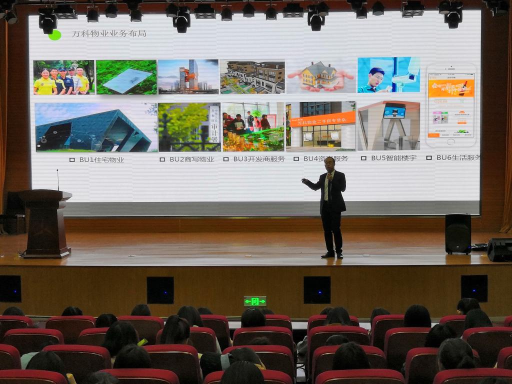 4月25日下午,经营管理学院邀请万科物业发展股份有限公司人力资源部经理周鹏,在图书馆报告厅举办就业指导讲座,2017级全体同学参加。