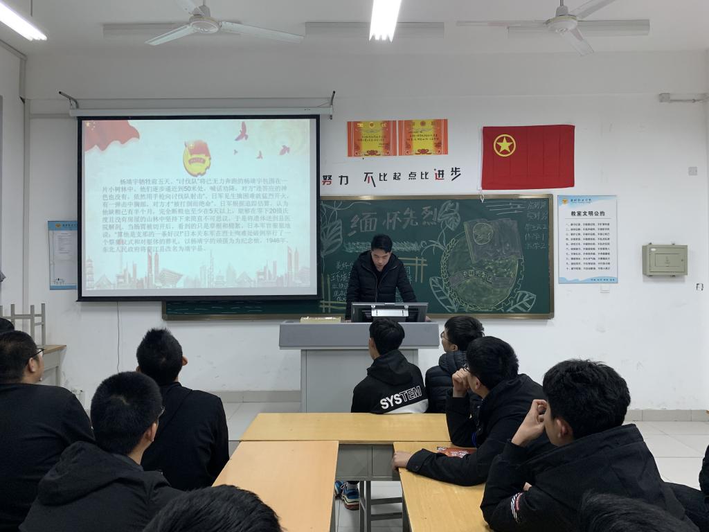 为弘扬中华民族传统文化,缅怀革命烈士,激发同学们爱党、爱国精神。汽车工程学院于3月28日下午在惠泽二号楼各班级开展“清明祭英烈”主题团课。