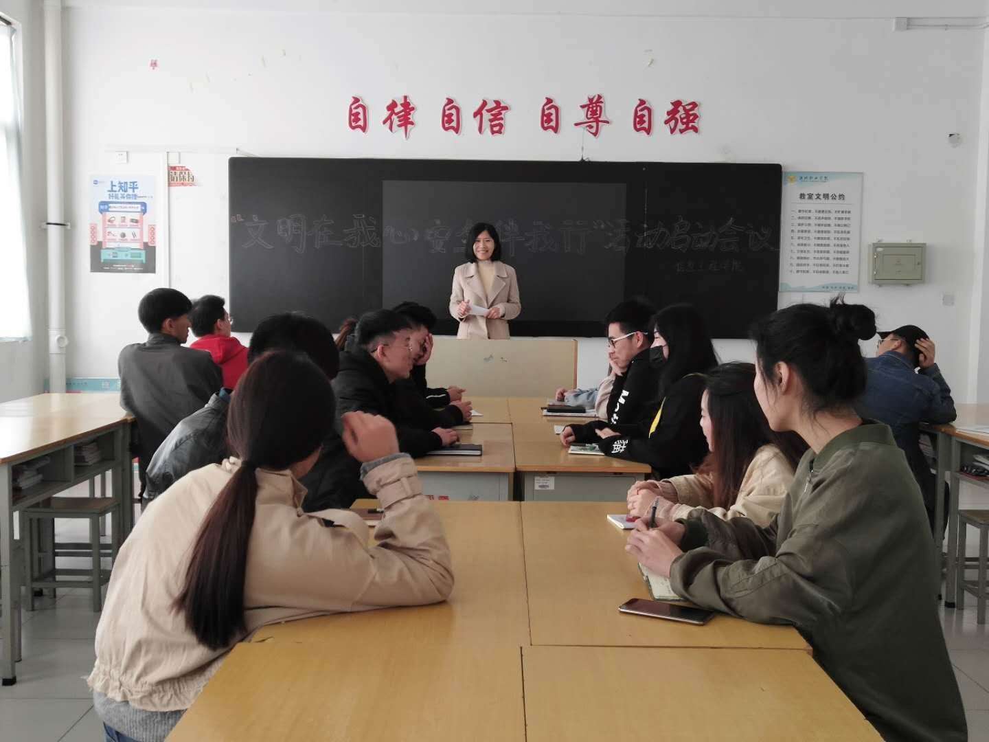 为进一步提高学生的白律意识、安全意识和防范能力,扎实落实学校关于学生安全管理工作的会议精神。切实改进和加强学生安全管理工作,努力营造安全、稳定、和谐、有序的学生管理与安全工作氛围。3月27日,信息工程学院在B512大教室召开“学生管理安全月”会议,学生会各部负责同学参加会议。