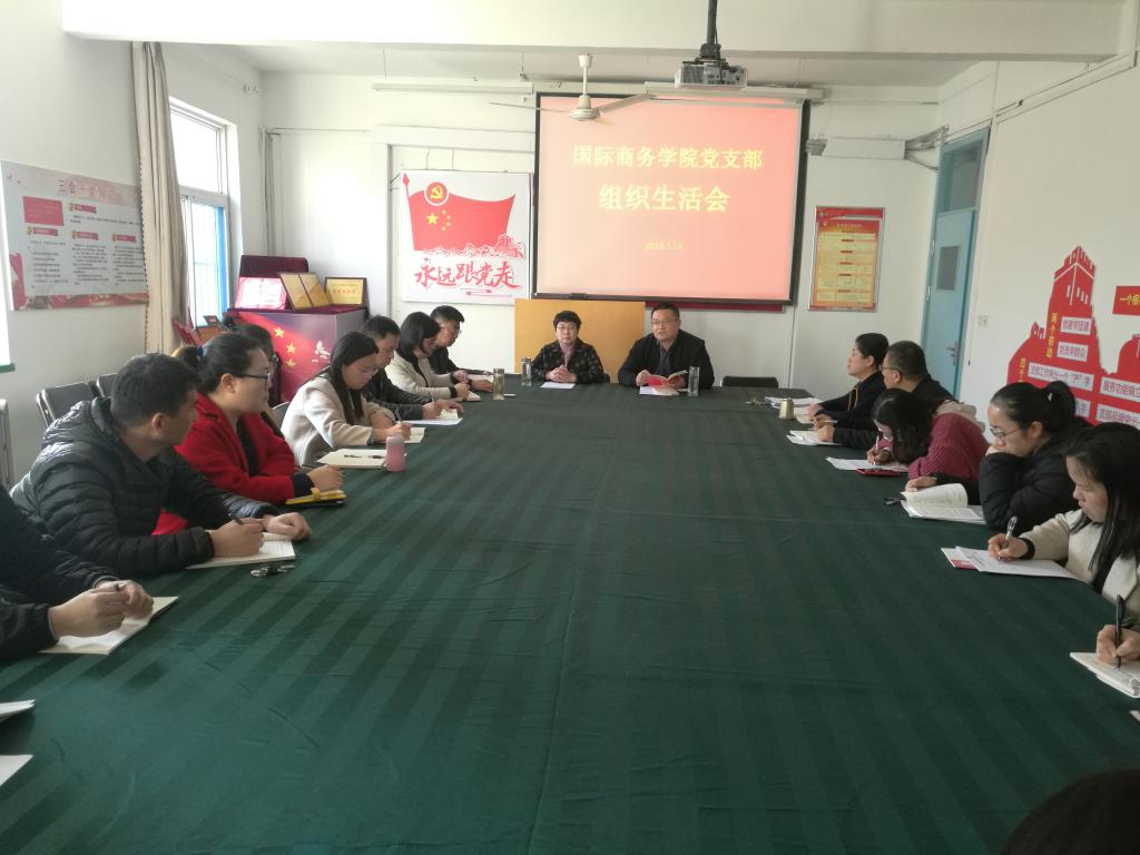 3月15日,国际商务学院党支部以认真学习贯彻习近平新时代中国特色社会主义思想,树牢“四个意识”,坚定“四个自信”,做到“四个服从”“两个维护”,担当负责、积极作为、改进作风、狠抓落实,确保党中央决策部署和上级党组织工作安排不折不扣落到实处为主题,组织全体党员召开专题组织生活会。