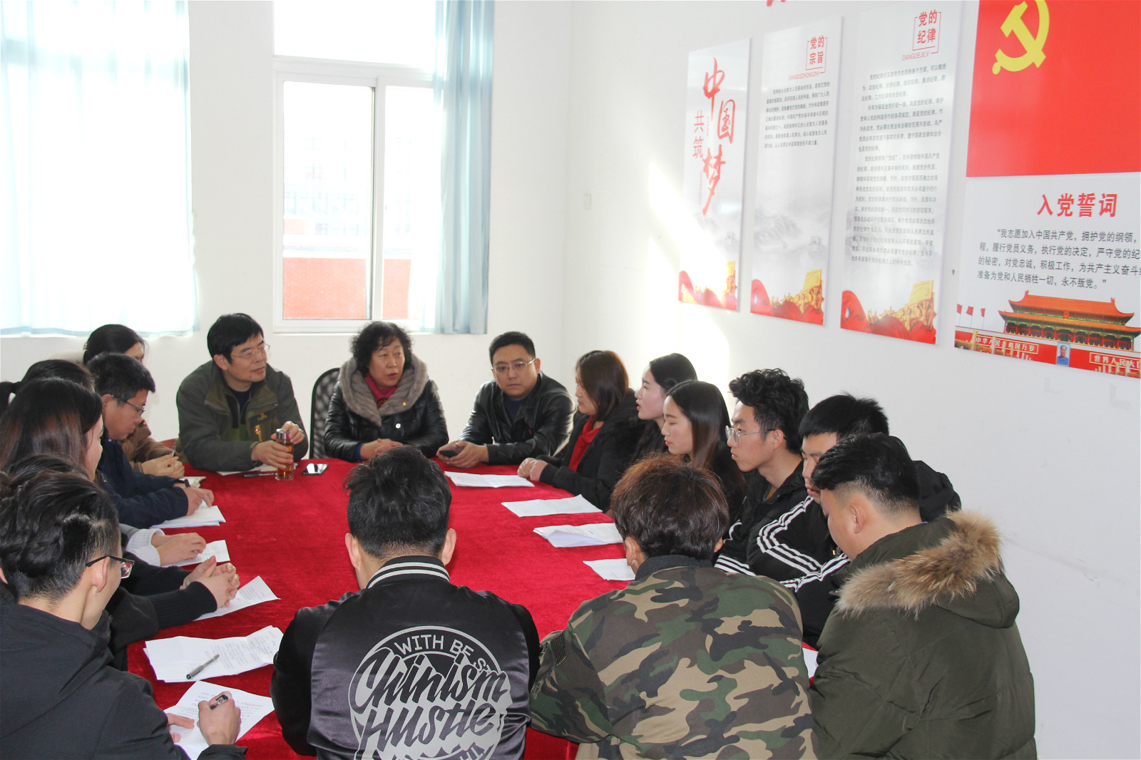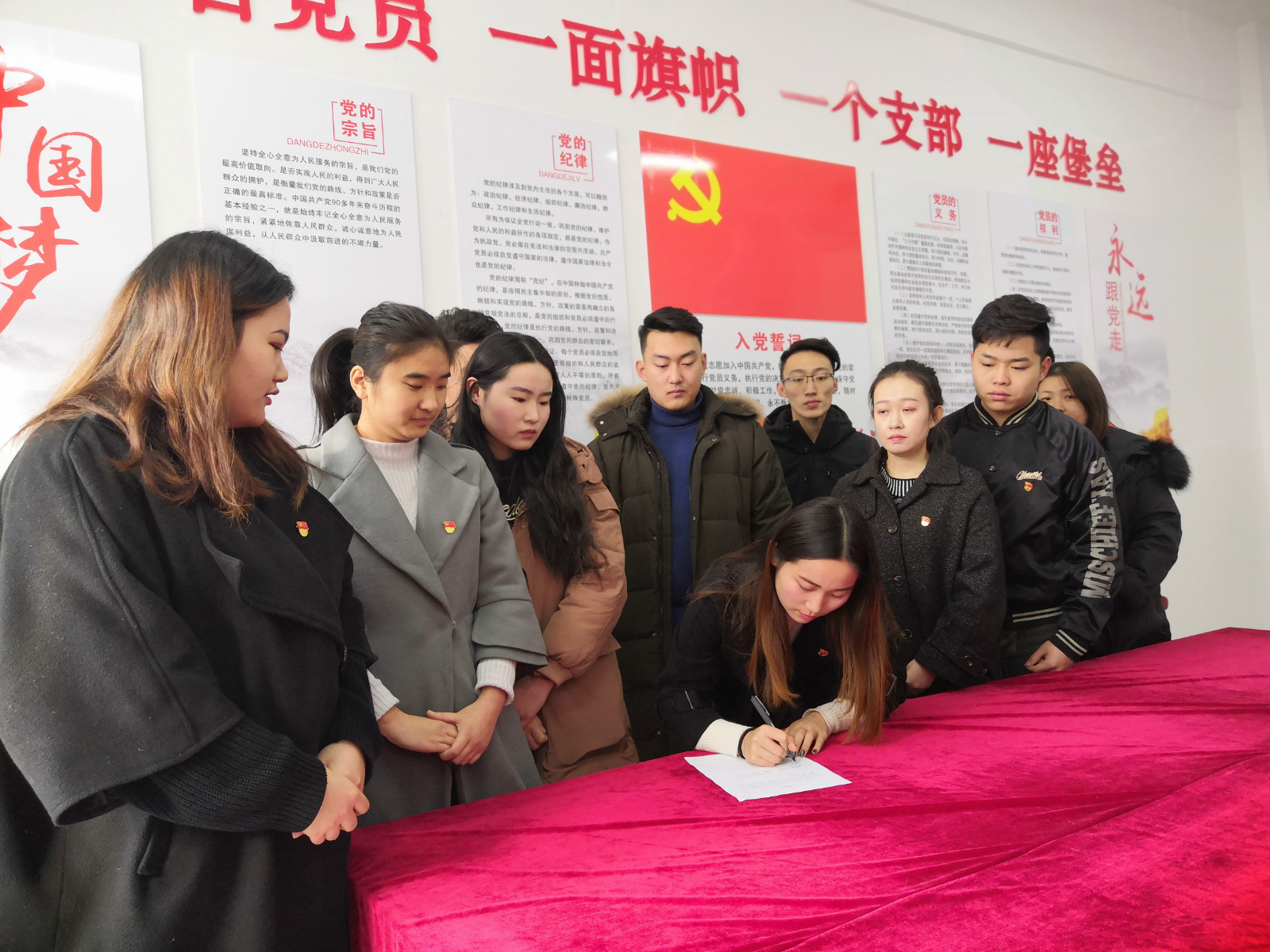 1月15日上午,信息工程学院预备党员入党宣誓仪式在惠泽2号楼B区313党员活动室隆重举行。信息工程学院党政负责人和2018年新发展的13名预备党员同志参加了宣誓仪式。