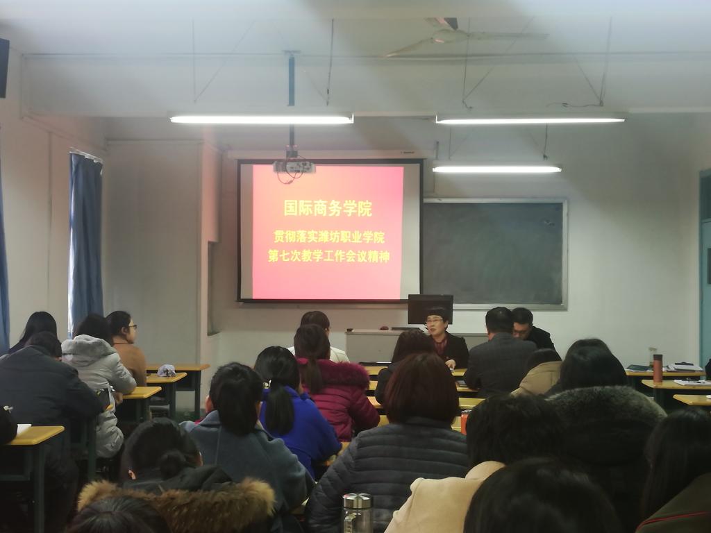 12月20日下午,国际商务学院召开全体教师会议,学习贯彻落实学院第七次教学工作会议精神。