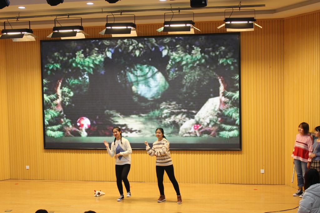 本次比赛面向学院全体学生,同学们的热情很高涨,参与度非常高。经过初赛和复赛两个环节的选拔,最终五个团队进入决赛。决赛在魅舞之翼精彩的开场舞的带动下拉开序幕,各个团队依次进行表演,王梦等同学带来的《绿野仙踪》,选手们通过流利的英语,以及生动的表演,把同学们带到了童话的世界,让同学们感受到了梦幻的神奇,赢得了现场观众的阵阵掌声。《麦琪的礼物》让他们真正领略到了人性的魅力,引发了同学们对人性的深度思考。现场参赛的每一个团队表现都非常优秀,他们传神的舞台表现力、清晰的发音、自然的表达、优美的语言和娴熟的口语能力展现出了他们对于英语学习的热爱和执着,让观众们享受了一场视觉和听觉上的饕餮盛宴,征服了在场的每一位观众,赢得了在场评委老师的赞扬和好评。活动中间还进行了抽奖活动,使现场气氛达到了高潮。比赛随着唐中华同学的一曲《江南》拉下帷幕,最后评选出一等奖1名,二等奖2名,三等奖2名。