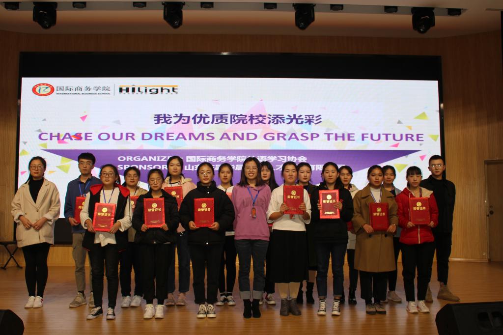 为激发广大同学学习英语的热情,加强对英语的学习,提高同学们对英语口语的兴趣,营造一个良好的英语学习氛围,国际商务学院外语学习协会于11月28日在奎文区16号楼报告厅举办以“Chase our dreams and grasp the future ”为主题的英语演讲比赛。此次活动受到山东东昊华晨国际人才交流有限公司的大力支持。