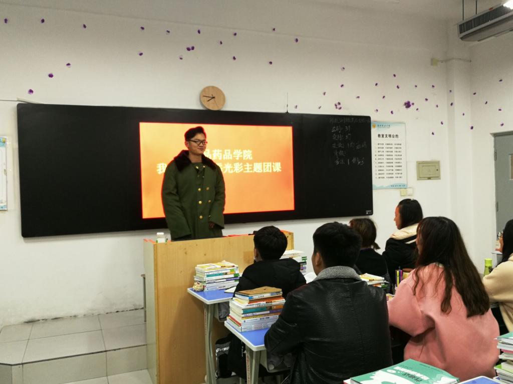 为了激励广大学生积极投身优质校建设,为学院增光添彩,同时展现食品药品学院青年学生良好的精神风貌,增强对学院的凝聚力和向心力,提高学生对学院的认同感、荣誉感、自豪感,11月14日,食品药品学院团总支开展了以“我为优质校添光彩”为主题的团课。