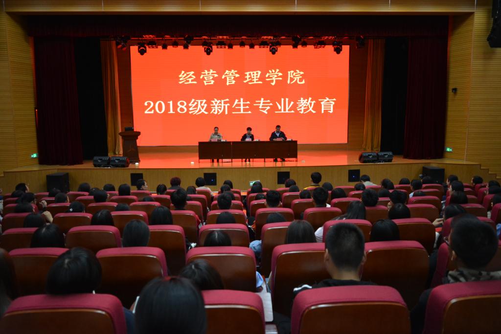 整个新生入学专业教育大会环节紧凑、组织有序,各专题定位清晰、内容充实,现场气氛热烈、互动踊跃,为经营管理学院2018级新生尽快适应学院环境、建立专业归属感、开启人生新旅程打下了良好的基础。(韩梅供稿)