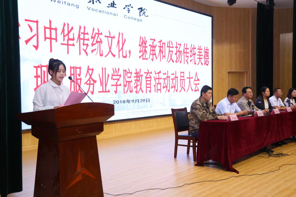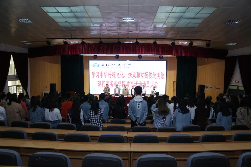 9月29日,现代服务业学院开展“学习中华传统文化,继承和发扬传统美德”教育动员大会,院党支部负责人、分管学团负责人、相关专业负责人及2018级全体师生参加了此次活动。