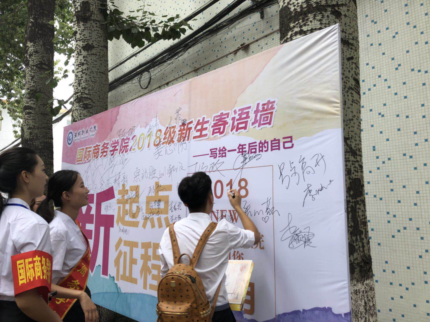 国际商务学院全体师生们用微笑温暖新生,让这一群千禧宝宝们异地求学的心并不孤单;用热情感染新生,让他们感受到大学生活丰富多彩,活力四射;用耐心帮助他们,让他们尽快熟悉大学校园,迅速适应大学生活,开拓属于自己的一片蓝天。(张法凯供稿)