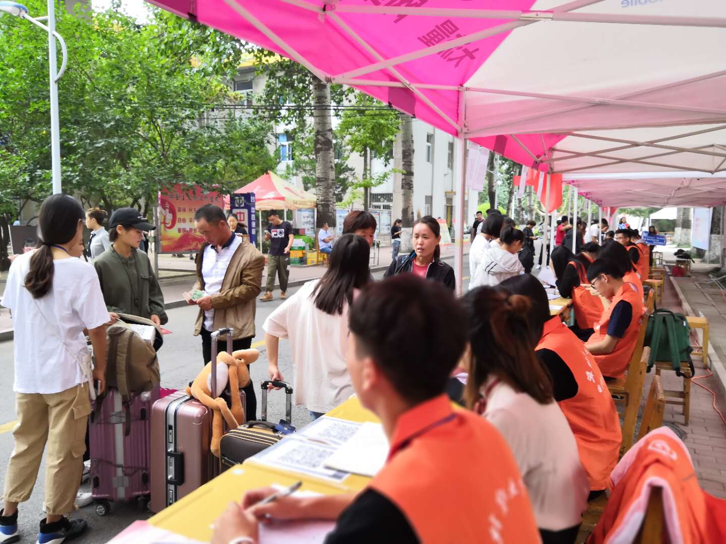 国际商务学院提前召开了迎新工作协调会,对迎新的各个环节进行任务分工,责任到人,保证迎新工作全面到位。一要环境到位:该院在学院对一号教学楼进行整修的基础之上,又对楼内卫生进行彻底清理,并配备了多种绿色植物进行了环境美化,让人一走进奎文一号楼就有一种心旷神怡的感觉。二要教室到位:该院对所有的新生教室进行了桌椅的调配,虽然是旧桌椅,但保证每个教室的木桌、铁桌、木椅、铁椅或方凳等风格一致。学生会成员对新生教室的桌椅板凳、电脑、投影仪、窗户等教室硬件设施进行擦拭,并在黑板上写上欢迎新生的标语。三要人员到位:该院在人员紧张的情况下,按照学院200:1的要求比例配齐专职辅导员,选拔优秀新老教师担任新生班主任。在部分专业教师需要停课备赛的情况下,及时调整专业教师授课安排,确保新老生课程绝无空堂。四要业务到位:该院多次召开班主任会议,将学院大数据迎新方式对新生班主任进行培训,并采取“老带新”“配班导”“志愿者”等方式保证迎新人员到位。五要氛围到位:该院早早就布置好了迎新展板、标语、电子屏、指示牌和寄语墙,新生一进入校园就感受到文化国商热情洋溢的氛围。六要服务到位:新生班主任们认真地为每一位新生办理入学手续,并为他们提供各种咨询,解答家长提出的种种问题,直到他们脸上露出会心的笑容。忙碌的学生志愿者们身着统一的橙色马甲,佩戴红色袖标穿梭在迎新现场,时时为新生伸出援手,帮他们提行李、带路等,真正做到了:沟通零距离,交流无障碍,服务无疏漏。宿舍的接待也是井然有序的,志愿者将每一名新生及家长送到宿舍,安置好之后才离开,并留下电话号码,以备新生不时之需。其中一名济宁新生的家长不禁赞叹道“没想到学校的服务工作这样周到,让我们家长把孩子放心地留在这里!”