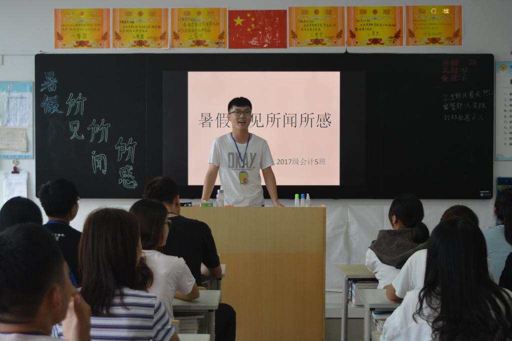 为进一步增强学生参加活动的积极性,提高同学们学习工作的能力,总结同学们在暑期社会实践情况,8月30日下午,经营管理学院开展关于“暑期所见所闻所感”的主题班会。