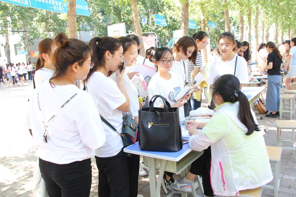文化创意学院2016级学生,都早早的来到现场,积极参加招聘。学生在与用人单位的洽谈中,关注自身发展机遇、企业发展前景和福利待遇等方面的意识明显增强。参会的企业单位都积极宣传,从企业历年的薪资待遇、未来发展、企业文化建设等方面吸引学生。会场气氛热闹,同学们都手持自己精心准备好的自荐书和简历,充满自信地穿梭于人流中,积极与招聘人员交流,主动了解用人单位的详细情况。文化创意学院负责人来到招聘会现场,鼓励同学们多了解几家参会单位、多投出几份简历。应聘的同学们做好了充分的准备,仪表大方、专业知识过硬、从容应对提问,表现出了良好的专业能力和综合素质,体现了当代大学生优秀的精神面貌,受到用人单位的广泛赞誉。青岛市市北区春天花花幼儿园是国家一级一类幼儿园,该园王园长说“往年来潍坊职业学院作过宣讲报告,学生悟性高,专业能力强,肯吃苦敢担责,今年来选聘,发现学生的综合素质有了更大的提高,是胶东半岛各专业院校学生中素质最好的学生之一。