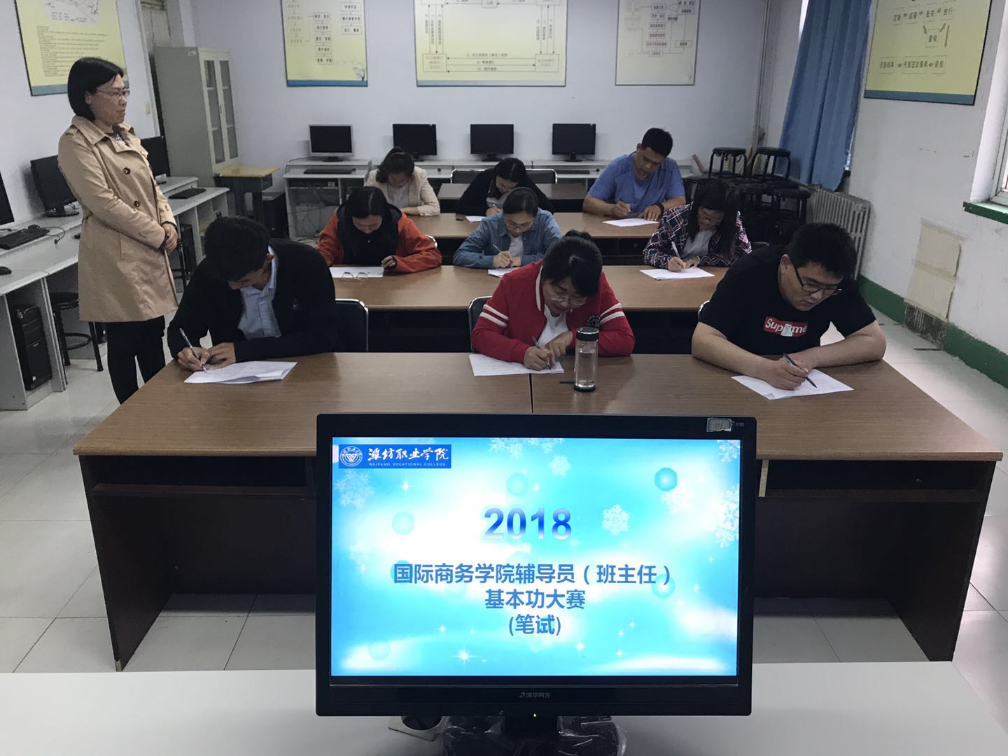 比赛前期,我院做了充分的准备工作,对题目的设计及评分标准的把握,进行讨论,力求使比赛不仅成为检验班主任队伍水平的舞台,更要使其成为提高班主任工作能力的平台。