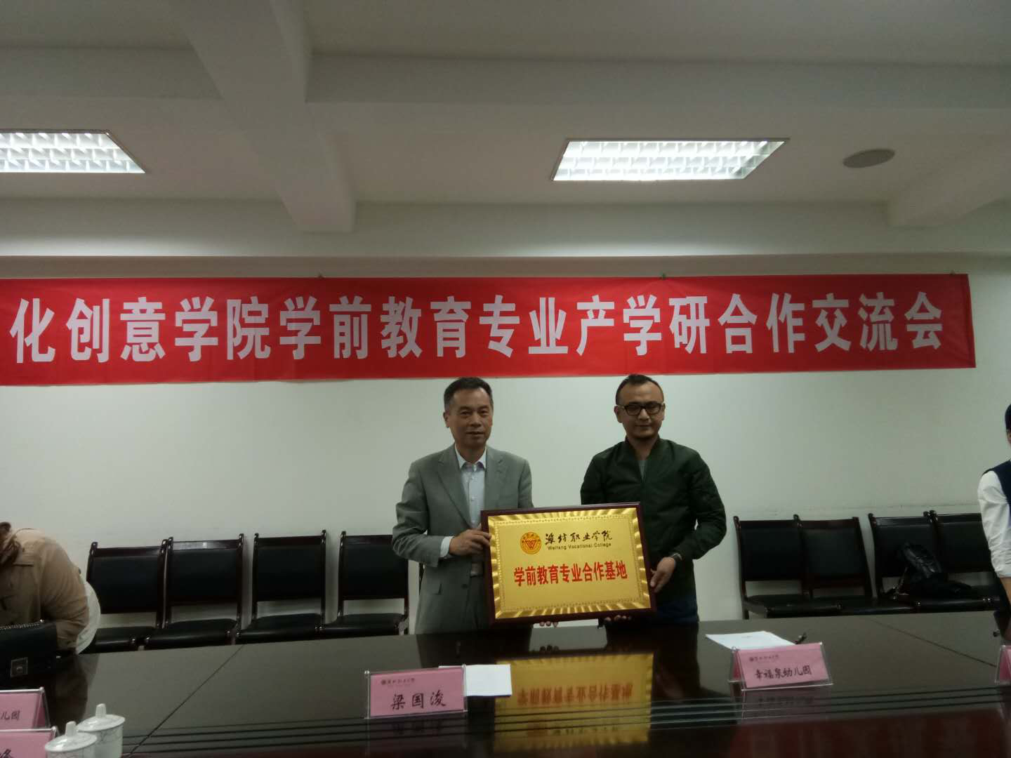 此次合作交流座谈会,学院通过与各幼儿园的沟通和交流,在产教融合、人才培养、双方资源共享、共同制定人才培养方案及学前教育专业见习与顶岗实习等方面达成了共识,有效地加强了学前教育专业与幼儿园之间深度融合。学院与各幼儿园签订了合作协议并进行了合作基地授牌。(李宁 谭洁 供稿)