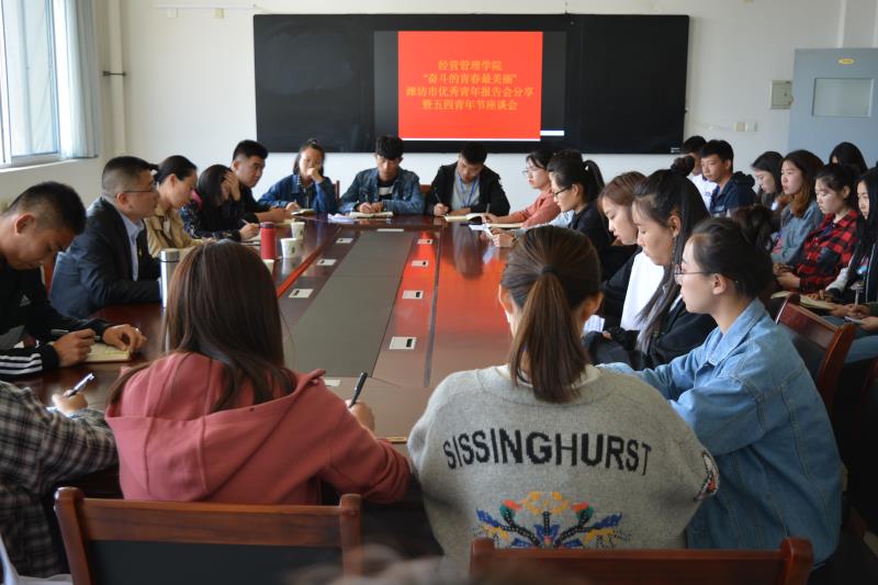 经营管理学院召开“奋斗的青春最美丽”潍坊市优秀青年报告会分享暨五四青年节座谈会