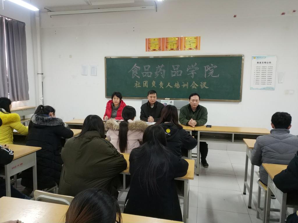 为了进一步规范社团工作,总结本学期社团工作的成绩和不足,同时使社团负责人对于下学期社团工作有了进一步的了解,食品药品学院隆重召开了2017年度社团负责人指导大会。学院党支部书记、分管院长和团总支负责老师及10余位社团负责人参加了会议。