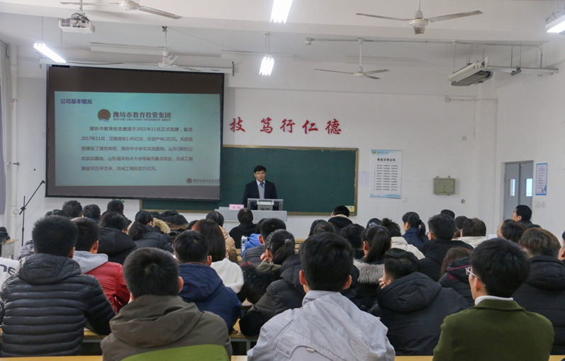 12月21日下午,信息工程学院邀请潍坊市教育投资集团运营副总监、潍坊滨海公共实训基地运营管理有限公司经理陈阳先生做了题为“公司运营管控系统分享”的报告。信息工程学院全体教师和学生会副部长以上成员聆听了报告。