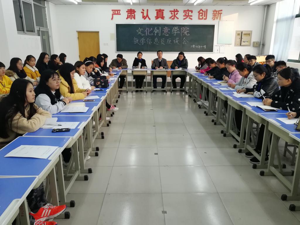 为加强日常教学规范化管理和教学质量监控,及时发现教学中存在的问题,11月28日下午,文化创意学院在16号楼121室召开了教学信息员座谈会。学院主要负责同志出席了座谈会,分管学生负责人及教学有关人员、全院40余名教学信息员参加了座谈会。
