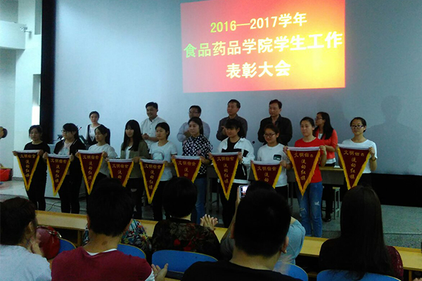 5月11日下午,食品药品学院举行2016至2017学年学生工作表彰大会。该院党支部书记、相关负责人以及所有辅导员、班主任与全体学生参加了大会。
