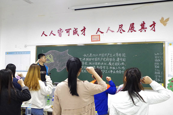 该院各班级团支部于4月24日晚自习时间分别开展了“重温入团誓词,牢记青年使命”主题团课活动,使信息工程学院全体团员都经历了一次思想洗礼和心灵震撼,营造了“坚定理想信念,脚踏实地,励志向上”的学习氛围。(张宝华供稿)