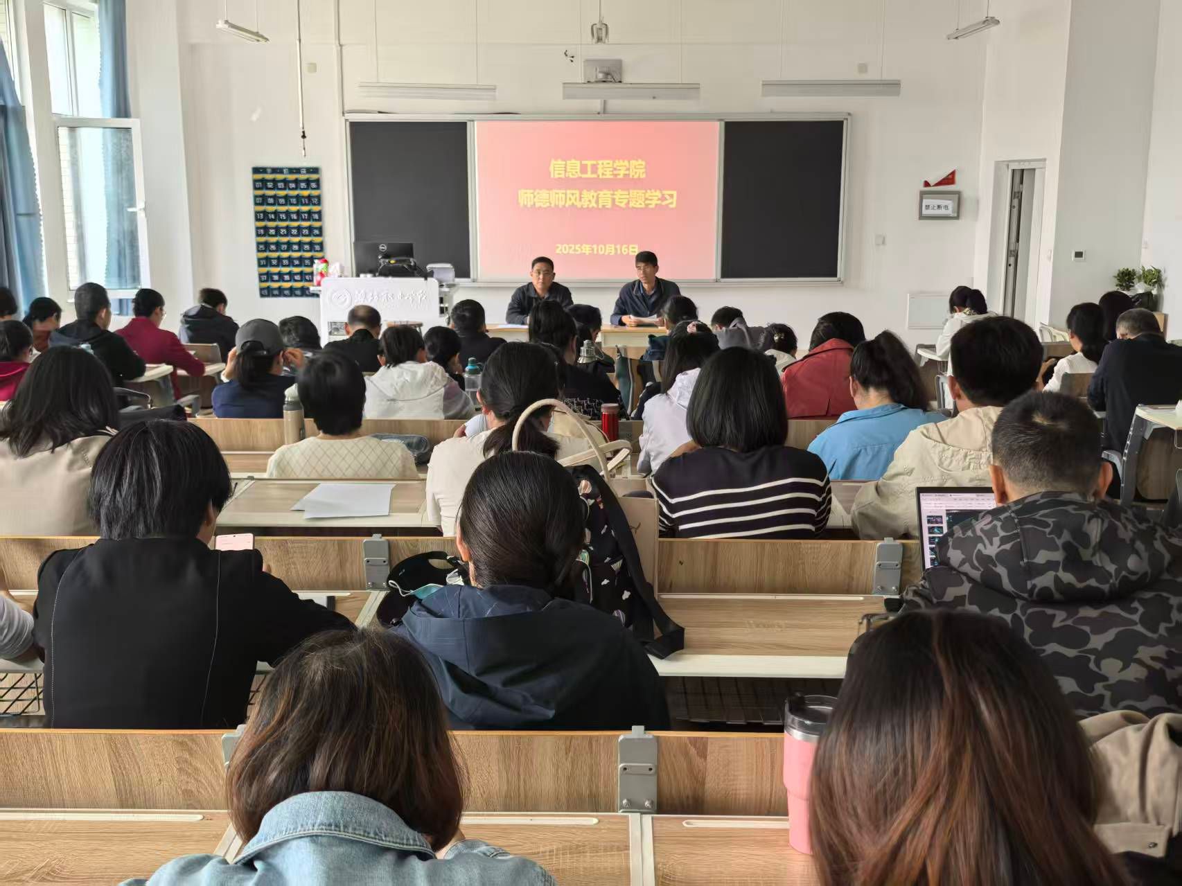 为深入贯彻落实学院党委《2025年师德建设教育月活动实施方案》精神,大力弘扬教育家精神,建设高素质专业化教师队伍,9月1日至10月16日,信息工程学院精心组织、周密部署,开展了一系列师德师风建设活动,取得了显著成效。