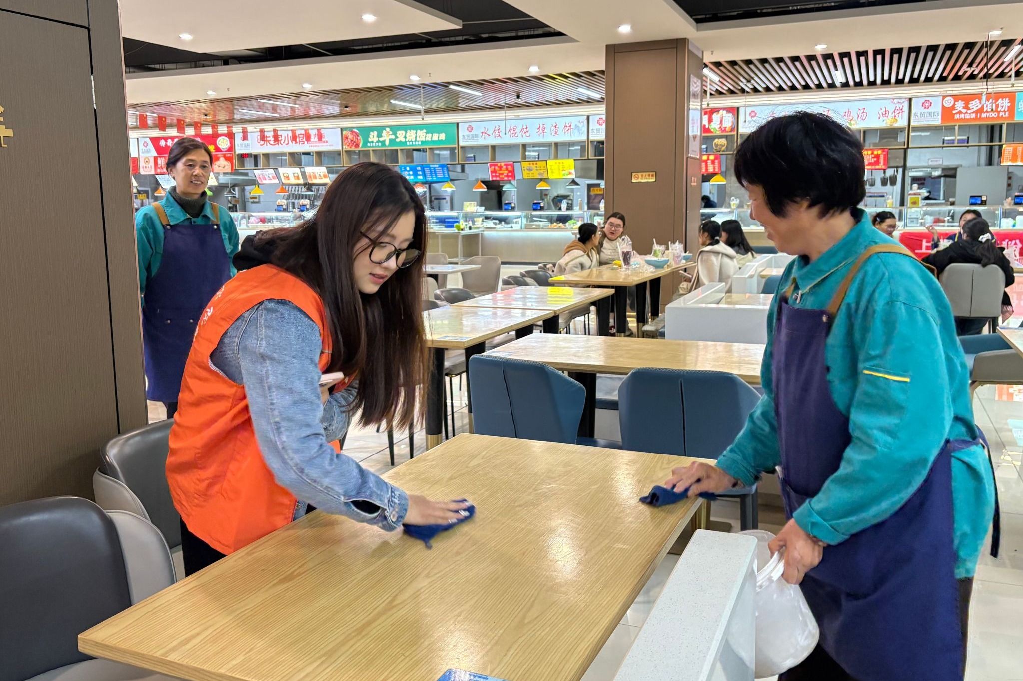 活动中,同学们积极投身校园志愿服务。他们主动走近校园内辛勤工作的老人们——无论是美化校园环境的园丁,还是默默为大家制作可口餐点的食堂员工,以真诚的行动表达敬意与感谢,为他们提供力所能及的帮助。同学们热情周到的服务赢得了老人们的高度赞许。