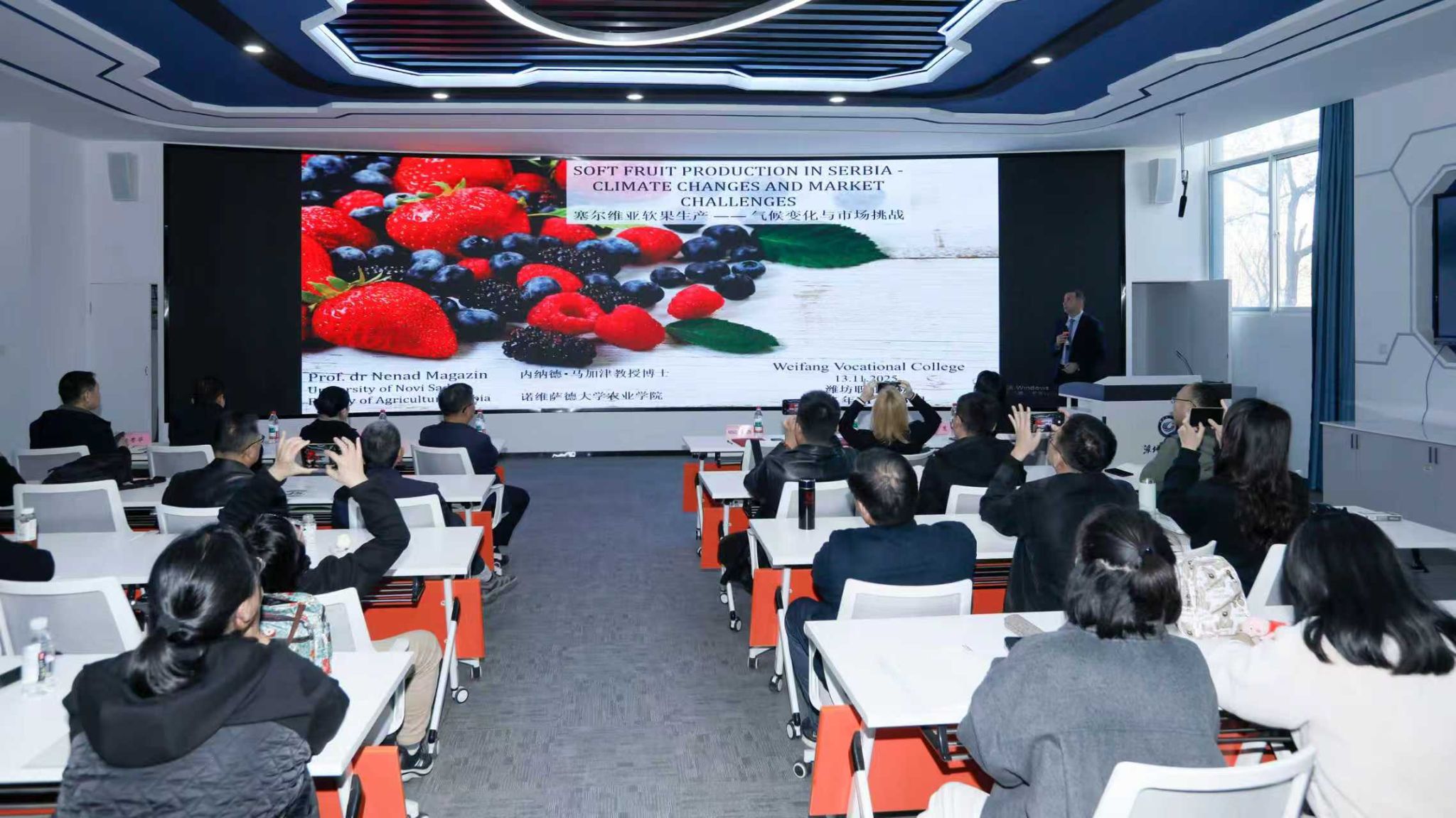 内纳德・马加津教授是国际园艺科学学会(ISHS)会员,塞尔维亚果树学科学会会员,在果树栽培和水果采后领域有着突出成就。他向在座师生作了题为“SOFT FRUIT PRODUCTION IN SERBIA - CLIMATE CHANGES AND MARKET CHALLENGES”专业报告,报告介绍了塞尔维亚软果生产的现状,让师生们了解了塞尔维亚主要软果种类、栽培品种、栽培模式以及软果产业在当地农业产业中的地位与发展前景。报告结束后,在座师生就软果栽培技术与新品种选育等问题与教授展开交流。