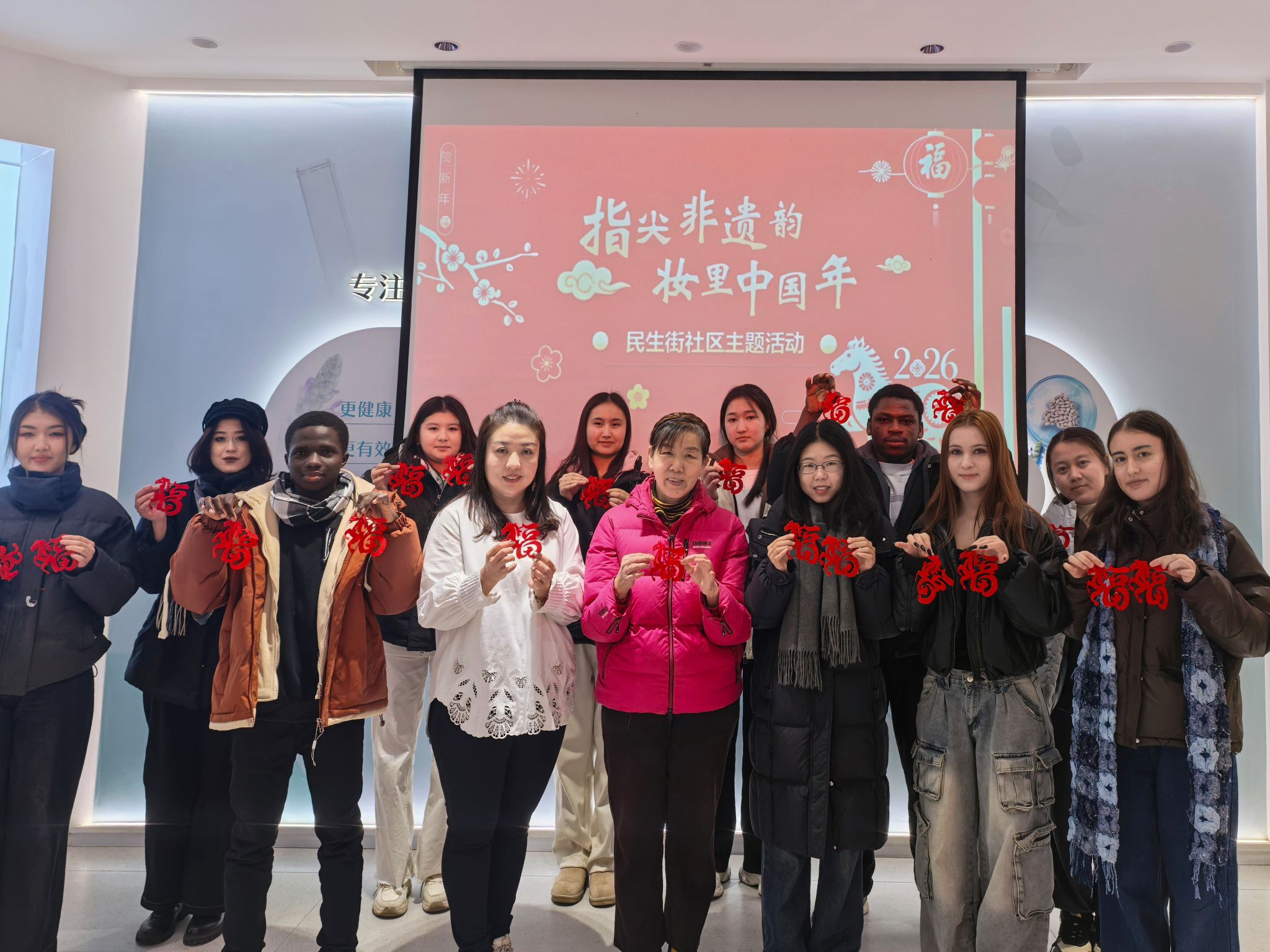 为迎接新春佳节,以剪纸寄福传递美好祝愿。1月28日上午,国际教育学院组织来自加纳、吉尔吉斯斯坦、土库曼斯坦等国家的10余名国际学生走进民生街社区,体验非遗剪纸文化。